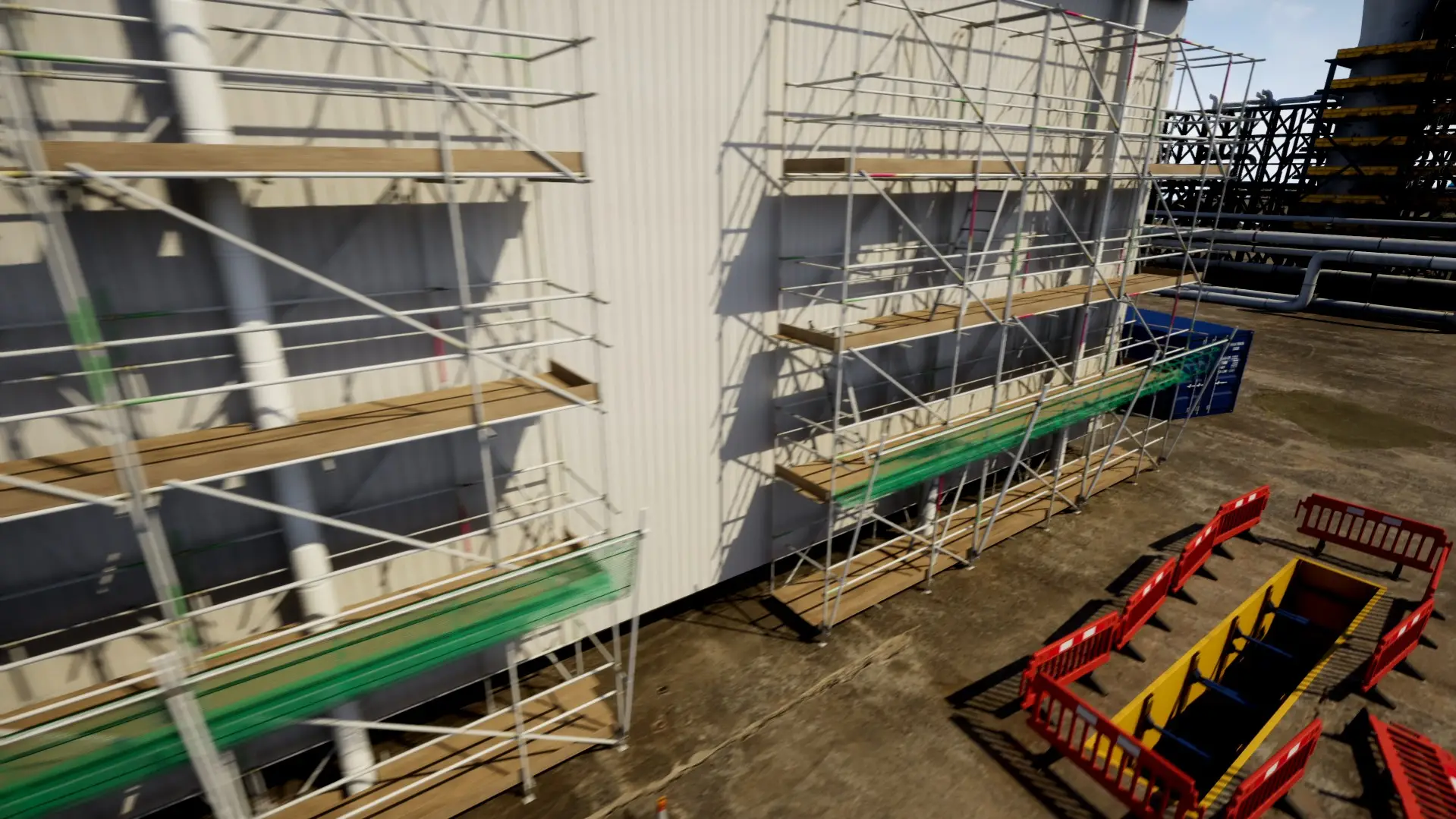 - After putting on all their PPE, the user would be teleported into the job site at ground level using a ‘fade to black -> fade out to scene’ transition
