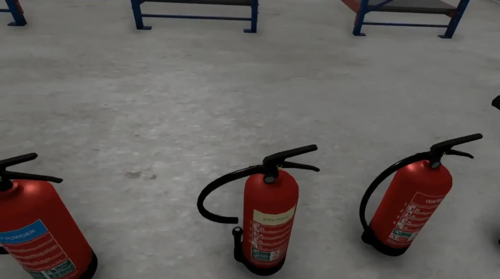 Instead of static fire drills, immersive simulations confront learners with dynamic fires, explosions, and smoke conditions. The VR environment teaches early hazard recognition, proper use of extinguishers, and coordinated evacuation responses. It’s an effective way to reinforce fire prevention habits in a realistic yet safe space. Below is an example from a basic fire safety training demo we created that covers how different fire extinguishers work and which types of fires need which extinguisher.